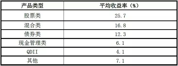 2014年,基金公司专户产品平均收益率14.1%,较2013年提升9.9百分点。其中,股票类产品平均收益率25.7%;混合类产品平均收益率16.8%;债券类产品平均净值收益率12.3%;现金管理类产品平均净值收益率6.1%;QDII类产品平均净值收益率4.1%。