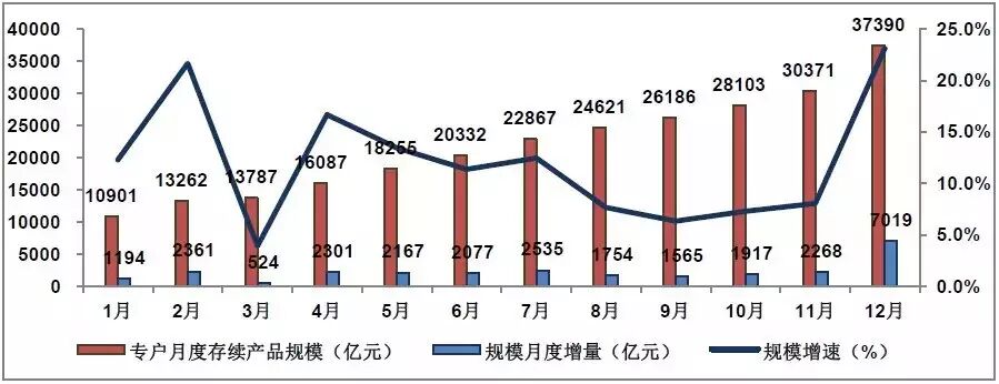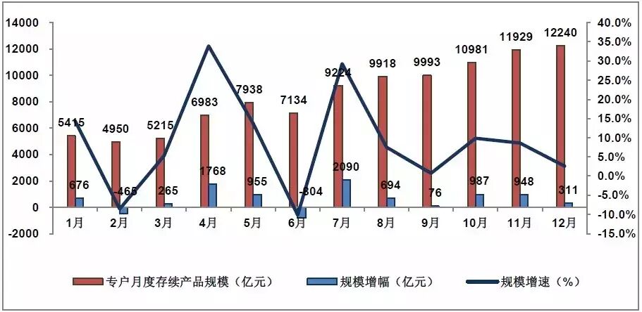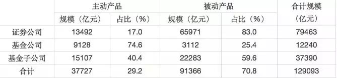 从管理方式来看,存续的主动管理产品3398只,管理资产规模1.35万亿元,较2013年增加5600亿元,增长70.9%。存续的通道产品9087只,管理资产规模6.60万亿元,较2013年增加2.18万亿元,增长49.3%。