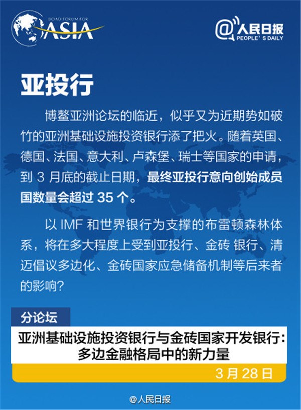3月26日,博鳌亚洲论坛2015年年会在中国海南博鳌召开。77场正式讨论,将围绕食品安全、雾霾治理、人工智能、一带一路、区域合作等议题展开。普惠金融、政商关系新生态、自贸区、市政债、影子银行、亚投行……这些概念,你都熟知吗?