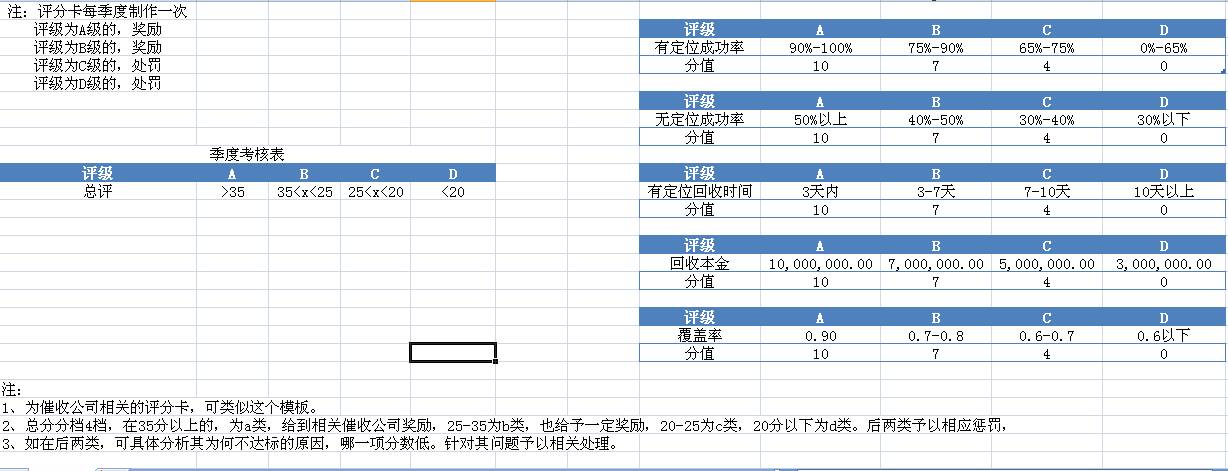 佣金标准每一年对其进行回顾,并重新制定。应结合上述评判体系中,各家公司的表现,差异化各家公司的佣金标准,制定激励性的收车佣金体系。