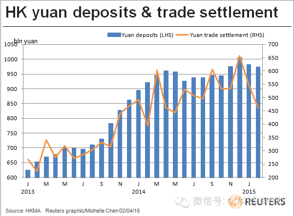 自2007年7月第一支人民币债券在香港发行以来,离岸人民币债券发展步伐日渐加快,债券品种亦日趋丰富。2014年离岸人民币债券发行量达到5,640亿元;香港人民币存款亦突破1万亿元,经香港银行处理的人民币贸易结算交易,2014年底则达到6.3万亿元。