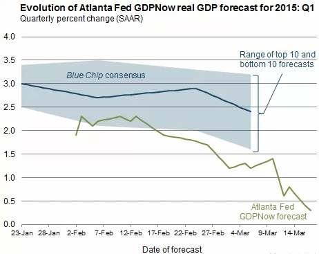 图4 美联储亚特兰大分行一季度GDP增速预测仅有0.3%