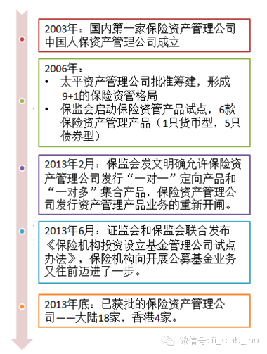 2013年2月,允许发行“一对一”定向产品和“一对多”集合产品,意味着保险资产管理公司发行资产管理产品业务的重新开闸。此次重新开闸,包括3只债券、1只货币、1只股票和1只基金。