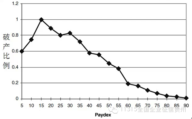 图1零售商在不同PAYDEX数值下的破产比例