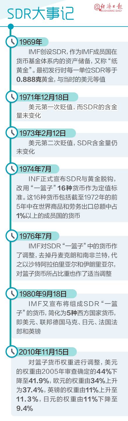 自1980年以来,除了在欧元诞生后,由欧元代替了德国马克和法国法郎,还没有任何一个新成员加入SDR的货币篮子。