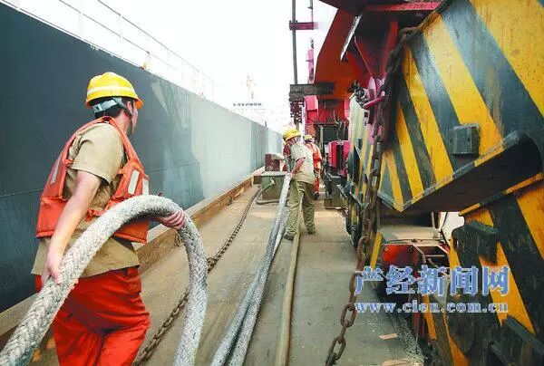 工人们正在码头卸货。来源:中国产经新闻记者:马志强 张建伟经济下行压力较大,进口承压,码头的工作人员闲暇时观望着没有货物的空船。 今