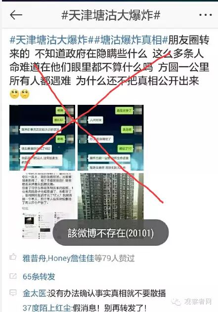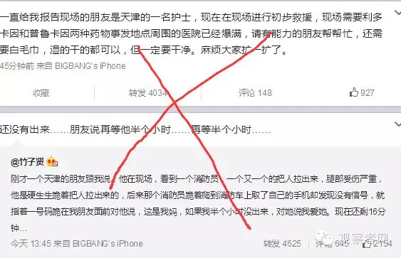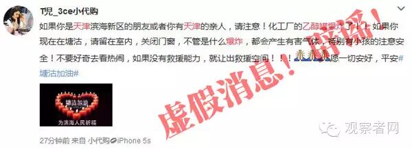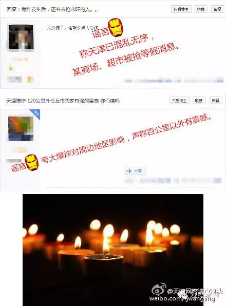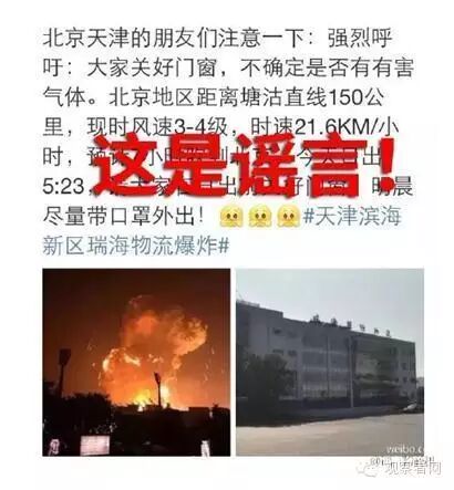 辟谣:天津市公安局网络安全保卫总队官方微博“天津网警巡查执法”称,该传闻系谣言。“灾难面前,我们携手度过,不传谣不造谣,等待官方信息,等待真相,就是对逝者最大的尊重,对现场救援人员最大的支持!”