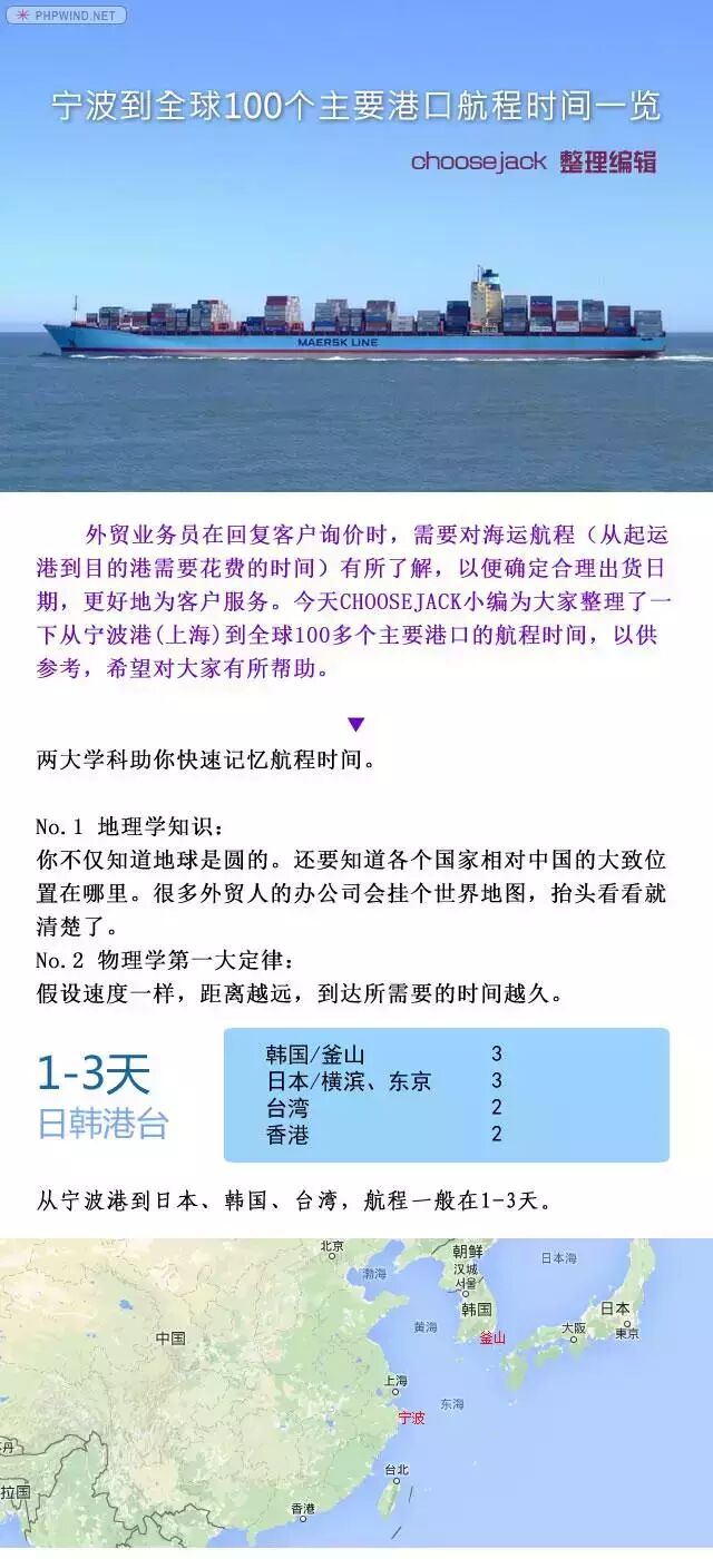 中国到全球100个主要港口的航程时间 2015-08-21 14:31 2346 (文 / 阿里巴巴外贸圈 choosejack) (文 / 阿里巴巴外贸圈 choosejack) 0 标签: 阿里巴巴 航程 继续看全文