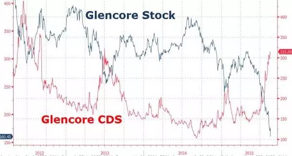 粗略地假设嘉能可CDS的底部就是在150个基点,其在这一位置附近徘徊了一年左右。过去一个月,该CDS价格出现了上涨,近日交投于315个基点附近,这比去年3月时的水平大幅上涨了150个基点。