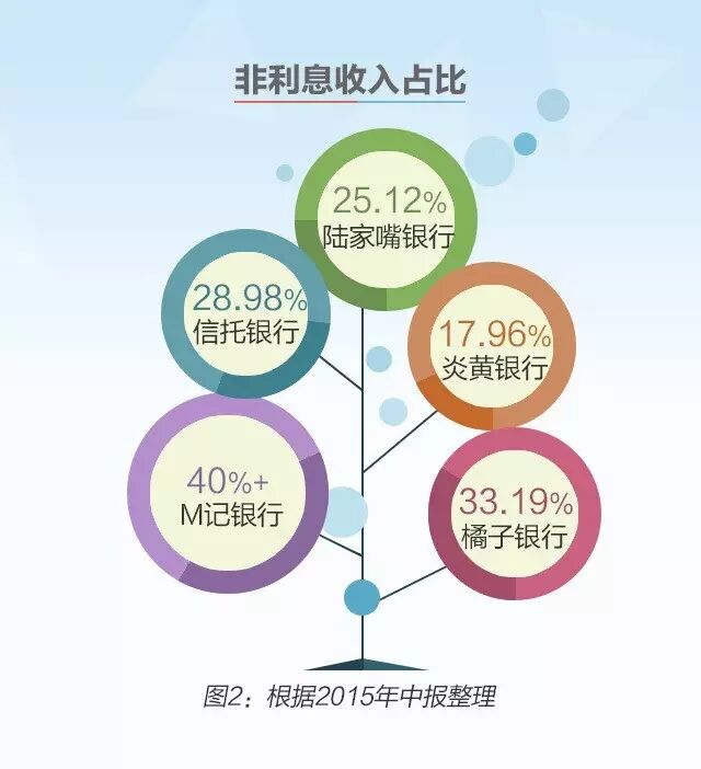 这其实给我们一个启示,对结构性变化的分析非常重要。实际上,银行的客户结构、业务结构、收入结构已经发生了很大的变化,甚至不同银行之间也逐渐有了比较明显的分化。以收入结构为例,按照同口径数据,已经公布中报的几家股份银行的非利息收入占比分别是,橘子银行33.19%、炎黄银行17.96%、信托银行28.98%、陆家嘴银行25.12%、M记银行同口径则超过40%。