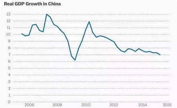 Vox为了反映中国经济增长情况,自制中国GDP增长图表。可以看到,2014年中国经济的增长率为7.4%,而2015年第一季度则增长了7%。