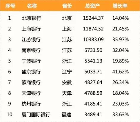 城商行资产排行榜发布