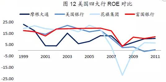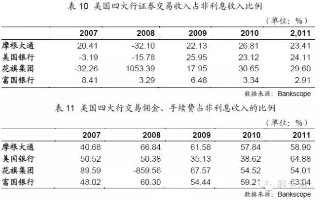 根据Bankscope的测算,富国银行其他业务的收益,主要在非利息收入部分,在这一部分中,富国银行的证券交易收入占比较少,经济业务和证券承销的佣金、手续费等占非利息收入的比例较高。