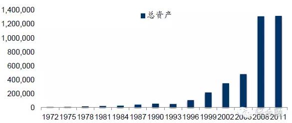 图1 近三十年富国银行的总资产增长情况(单位:百万美元)