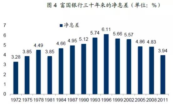 尤其让人惊讶的是,美国在1970至1986年间进行了利率市场化的改革,商业银行普遍面临着巨大的经营压力,但从富国银行的业绩表现来看,并没有受到太大的冲击,盈利水平反而逐渐提高。