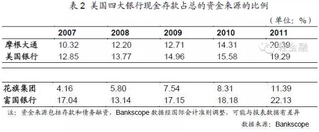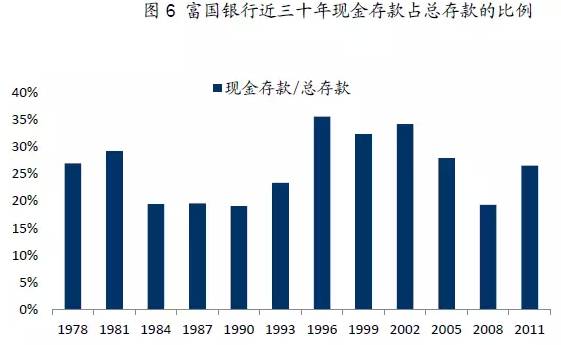 但是富国银行在利率市场化以后,积极拓展零售业务,通过ATM机的广泛使用和服务质量的提升,迎来了社区银行的蓬勃发展,维持住了较高的现金存款占比。