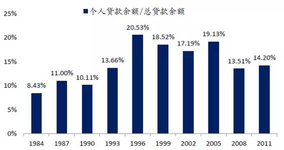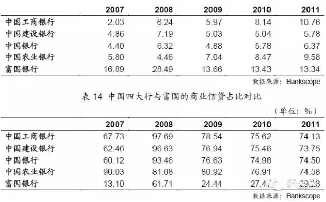 表13 中国四大行与富国的消费信贷占比对比(单位:%)