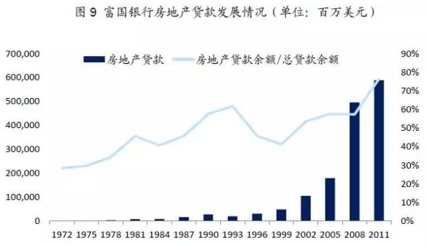 净息差的增长同样离不开房地产贷款的迅速增长,房地产贷款主要包括个人贷款中的住房抵押贷款和企业贷款中的房地产建设贷款,这两项贷款往往拥有较高的利率。纵观富国银行近三十年来的表现,房地产贷款业务的增长非常突出,从1972年占总贷款的不到30%,提升到近些年接近60%,而房地产贷款较高的利率也拉高了富国银行的净息差,为公司带来了巨大的经济效益。