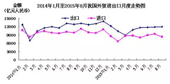 8月份,我国进出口总值2.04万亿元,下降9.7%。其中,出口1.2万亿元,下降6.1%;进口8361亿元,下降14.3%;贸易顺差3680.3亿元,扩大20.1%。