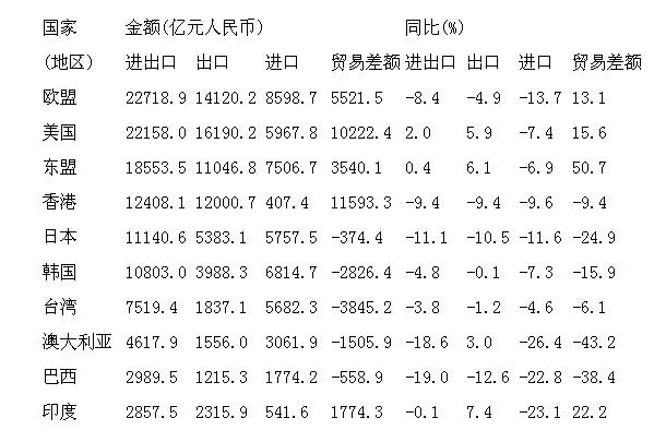 二、对美国、东盟出口保持增长,对欧盟、日本出口下降。
