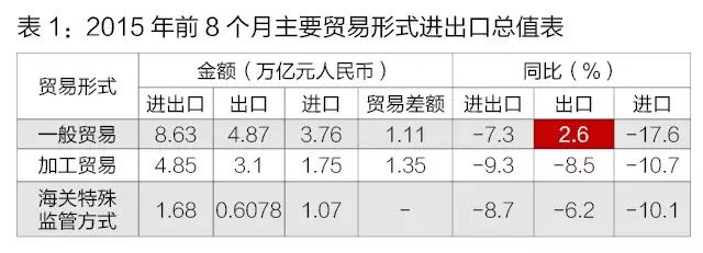 一般贸易出口增长,所占进出口比重有所提升。