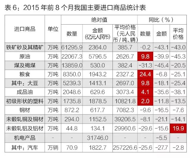 原油、粮食、成品油等主要大宗商品进口量增加,主要进口商品价格普遍下跌。