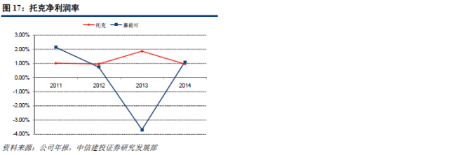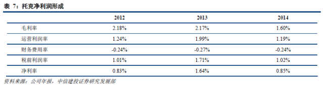 从托克自身的发展趋势来看,最近三年,托克的毛利率呈下降趋势,但是非贸易商品部分的成本控制能力有所提高。