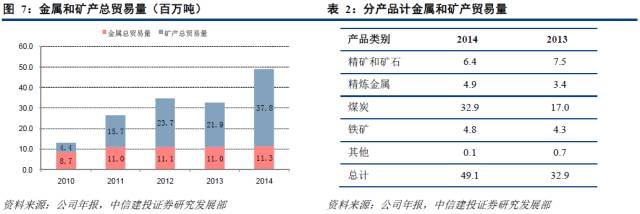 托克是全球最大的金属和矿产贸易商之一,在采矿商、冶炼厂和精炼金属加工厂之间建立全球连接,竞争优势源自在全球范围内以高性价比的方式交付的能力。公司不断扩展业务规模,以从规模经济中获益。2014年营业额达33亿美元,占全年总营业额的26%。同年,金属与矿物的总贸易量达4910万吨,创造历史单年最高交易量,较2013年有显著增长,增长率达49.2%。其中,矿物贸易量的增长最为明显,增长主要由煤炭贸易推动。