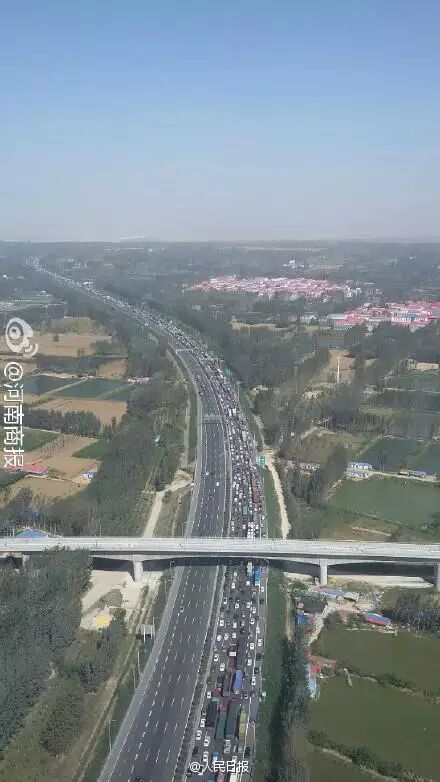 国庆长假高速公路免费通行第一天,今晨,天津:京沪高速泗村店路段严重拥堵;江苏苏州:沿江高速江苏省太仓主线收费站附近出现数百米的车流;南京:一度出城各方向都堵废了……