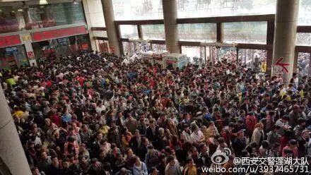 国庆首日上午,西安城西客运站客流量激增,返乡和旅游人员基本饱和。