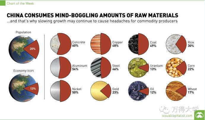 1、中国消费的大宗商品占全球份额2000年,中国金属消费量约占世界总量的12%,如今这一比例提高到了近50%。从1998年到2008年,中国对铁矿石等大宗商品的总