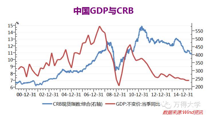 CRB指数是一种较好反映通货膨胀的指标,它与通货膨胀指数在同一个方向波动,在这一点上和黄金价格是一致的。