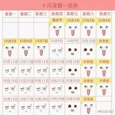 是不是很兴奋,长假之后只要再工作三天,又可以休息一天了!与往年不同,今天2015年的放假安排将中秋节和国庆节假期作了综合考虑,将中秋那一天假期挪到国庆假期中补休。这样,国庆假期从10月1日至7日,共7天,然后10月8日和9日正常上班,接下来这个周末只需周六的10月10日上班,10月11日这个周日可以休息1天!