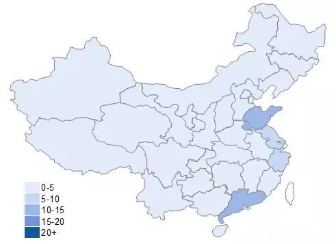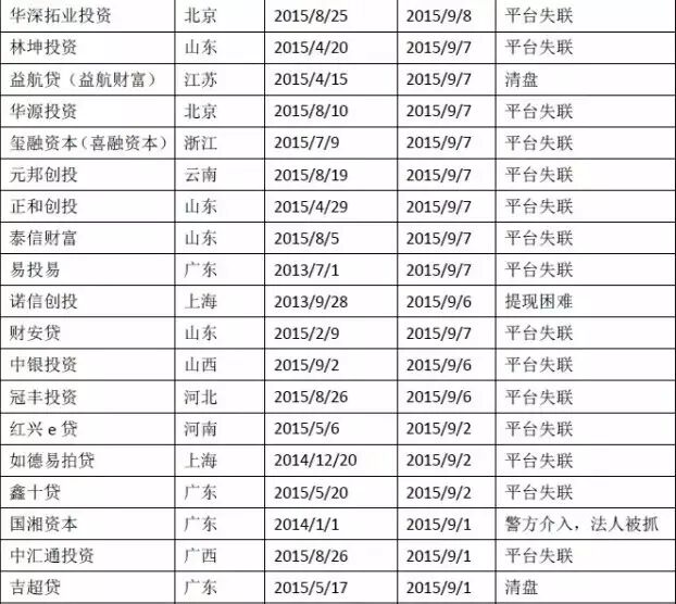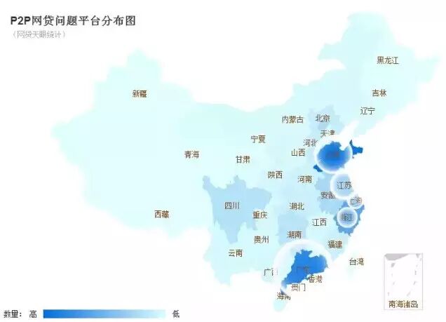 截止2015年9月30日,全国P2P网贷问题平台共计1046家。山东省问题平台数量最多,为204家,占全国问题平台总数的19.5%,广东省位列第二,共171家,占全国问题平台总数的16.35%,其次为浙江、上海、江苏、安徽。