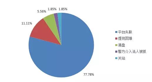 本月问题平台依旧以失联为主,据统计本月54家问题平台中,有42家平台失联,占问题平台总数的77.78%。其次为提现困难,共6家,占问题平台总数的11.11%。虽然近两月问题平台数量呈下降的态势,但失联平台、清盘等停止运营的问题平台的数量反而呈上升的趋势,结合清盘、失联、停止运营等问题,本月终止运营平台达48家,占本月问题平台总数的88.89%,行业汰劣速度继续加快。