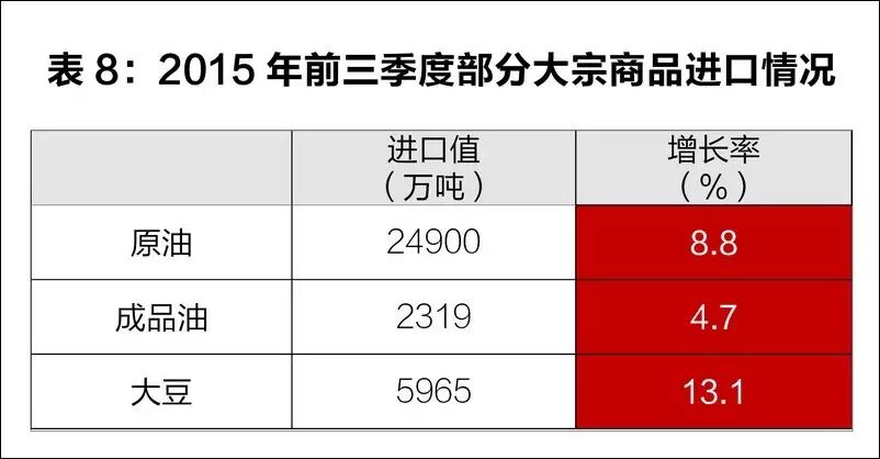 七、部分大宗商品进口量增价跌,贸易价格条件明显改善。前三季度,我国部分大宗商品进口量保持增长。其中,原油2.49亿吨,增长8.8%;成品油2319万吨,增长4.7%;大豆5965万吨,增长13.1%。同期,我国进口价格总体下跌11.6%。其中,铁矿砂、原油、成品油、大豆、煤炭和铜等大宗商品价格跌幅均较深。前三季度,我国出口价格总体下跌1.2%,跌幅明显小于同期进口价格总体下跌幅度。由此测算,前三季度我国贸易价格条件指数为111.8,也就是说我国出口一定数量的商品可以多换回11.8%的进口商品,意味着我国贸易价格条件明显改善,对外贸易效益有所提升。