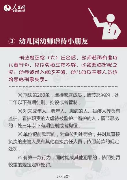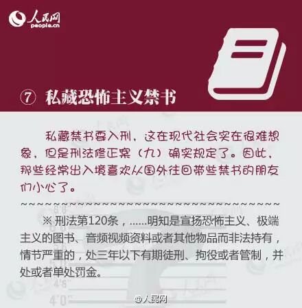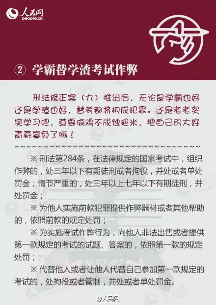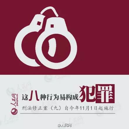 刑法修正案(九)11月1日起施行,这些行为将入罪:①校车客车司机开车超载或超速;②学霸替学渣考试作弊;③幼师虐待小朋友;④用微信编造、传播虚假信息;⑤辱骂、威胁法官;⑥撒泼耍赖打警察;⑦医闹维护权益;⑧私藏恐怖主义禁书。转发提醒身边人!