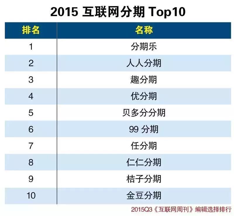 随着人们消费习惯的改变,互联网分期受到消费者欢迎,市场潜力很大,当下主要面向校园和白领消费金融市场,趣分期、分期乐均在一定程度上赢得了用户的认可,用户规模已触达千万级别,覆盖千所高校、上百城市,趣分期获得蚂蚁金服领投的2亿美元E轮融资,资本青睐程度也从一个侧面反映了用户需求;蚂蚁金服、京东金融仍位居互联网理财平台的前列,截至2015年6月,铜板街投资额破170亿元,努力帮助100000家小微企业完成梦想,苏宁金融作为苏宁转型的重要战略组成部分,也不容忽视;另外,天天基金网、数米基金网等互联网基金平台已逐渐走入被人们所熟知的阶段。