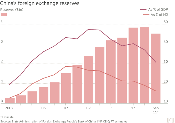 如今投资者却在想,面对外汇储备不断减少的局面(中国外汇储备已从2014年6月的4万亿美元峰值降至3.5万亿美元),中国的外汇储备库存还能支撑多久?资金正以创纪录的速度流出中国,另外在人民币最近大幅贬值后,中国央行正使用外汇储备支撑人民币汇率。