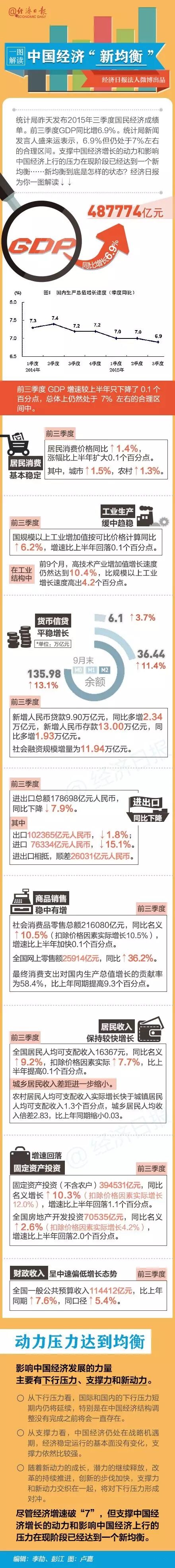 统计局近日发布2015年三季度国民经济成绩单。前三季度GDP同比增6.9%。统计局新闻发言人盛来运表示,6.9%但仍处于7%左右的合理区间。支撑中国经济增长的动力和影响中国经济上行的压力在现阶段已经达到一个新均衡……新均衡到底是怎样的状态?