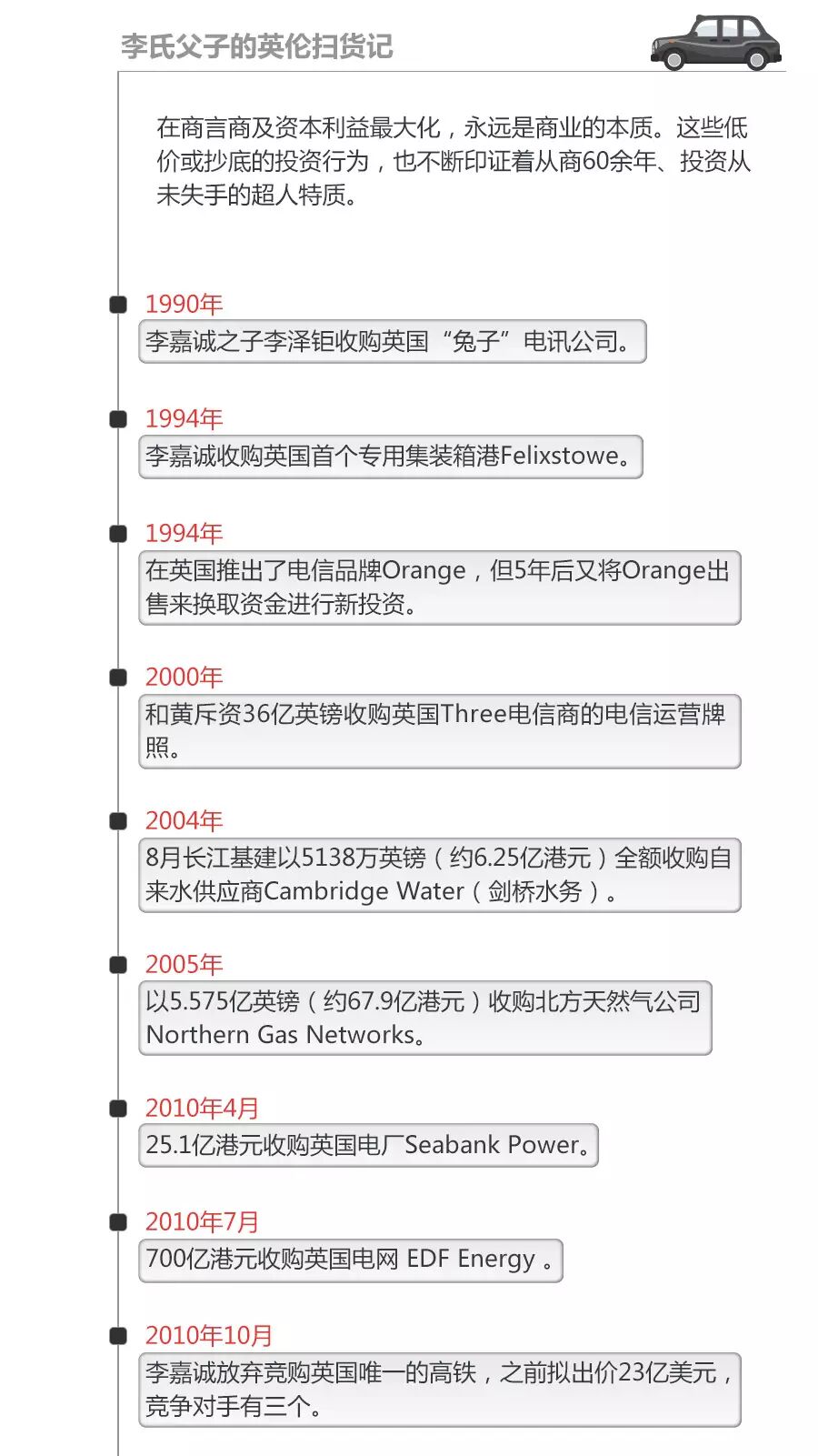 从媒体的梳理来看,2010年,李嘉诚斥资91亿美元收购英国电网;