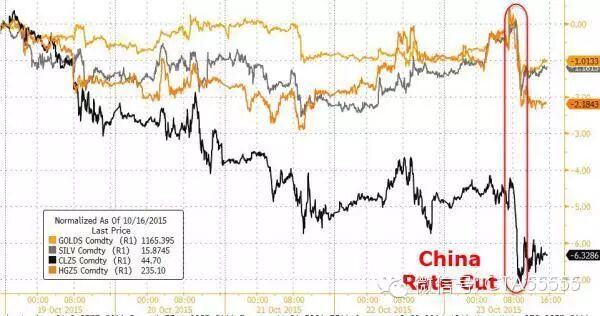 然而,中国“双降”的消息,对大宗商品和贵金属并未构成提振。经历了短暂上涨后,金银铜油均转为下跌,达到近期低点。