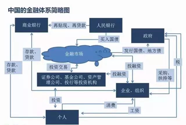 【导语】中国金融体系里有6个主要实体:人民银行、政府、商业银行、证券公司等金融投资机构、企业、个人。理解金融体系只不过需要了解这6个实体