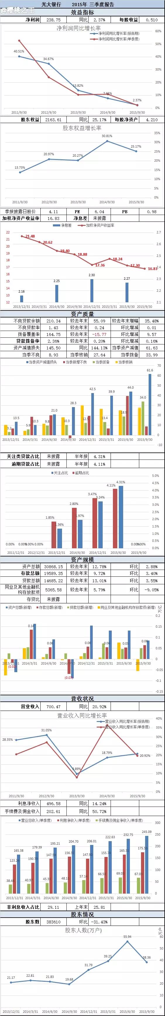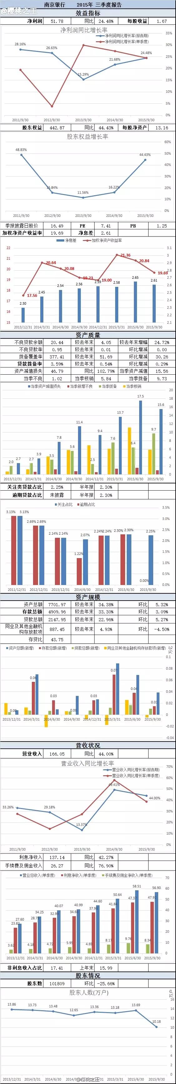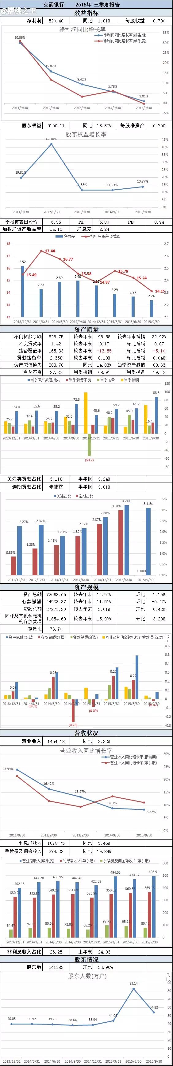 16家上市银行2015三季度报四大行净利增速下滑明显,中行09年来净利首现季度性下滑,建行不良率升至1.45%。