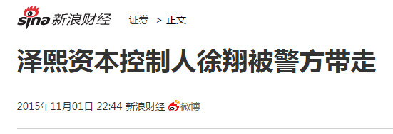 来源:华尔街见闻(wallstreetcn)、金钱注意(money9918)11月1日,据新华社记者从公安部获悉,泽熙投资管理有限公司法定代表人、总经理徐翔等人通过