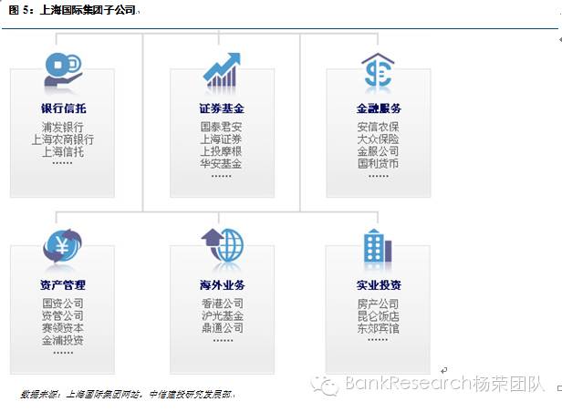 地方国企改革给部分股份行完善金控平台布局的机会,最为典型的是浦发银行。2015年初,股东上海国际集团将上海信托的信托资产、国利货币、上投摩根基金三块金融牌照类业务托管给浦发银行,接下来,浦发收购了上海国际信托的信托资产,至此上海金融国资改革的路径渐渐明晰。浦发银行作为业务对接最广泛的金融机构(相对券商与保险),有望成为上海非保险非券商金融资源的整合平台,预计在上海信托整合完毕后还将有一系列资本整合动作,公司作为金控平台,业务结构将产生显著变化。尤其是其寄予厚望的资管业务,有望得到信托、公募基金甚至创投基金资产的注入,从而以外延扩张的形式改善此前以对公业务为主的业务形态。除浦发以外,各银行均试图将触角延伸到其他金融领域,兴业与交行甚至通过子公司持股率先持有了券商牌照,未来国有金融资本的整合中,与各行业均有一定互补性的商业银行有望成为整合核心。