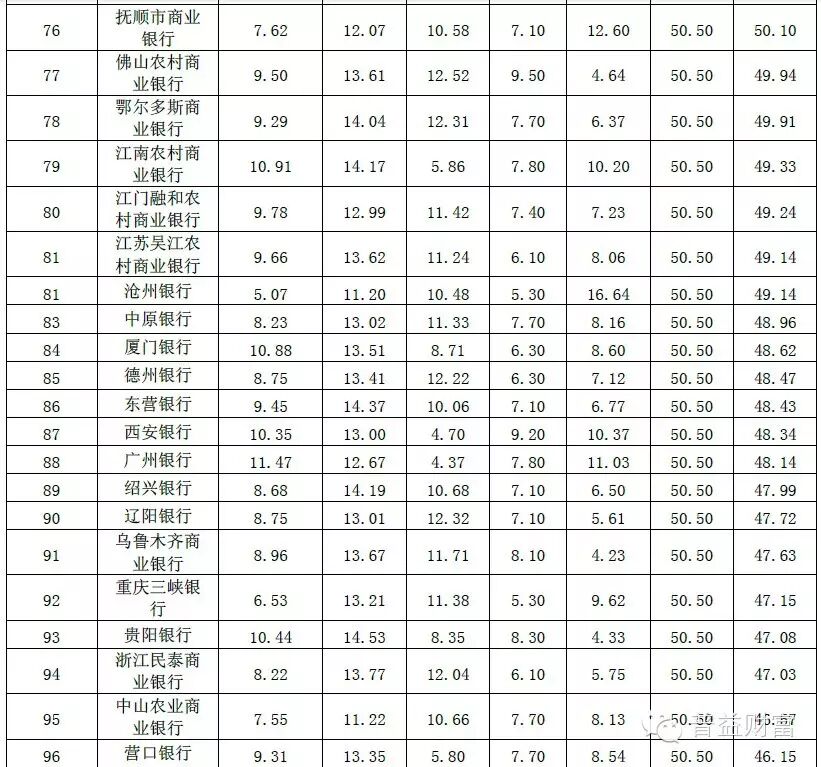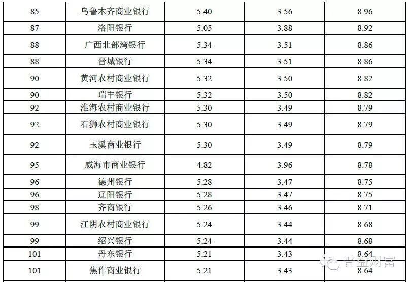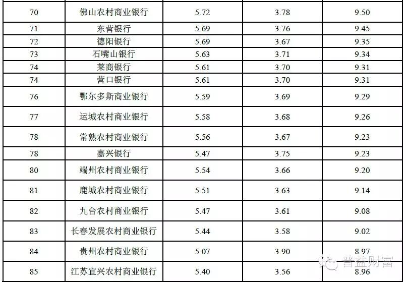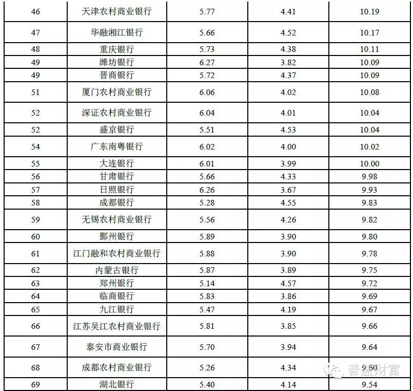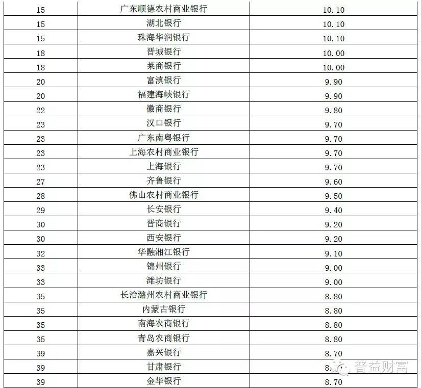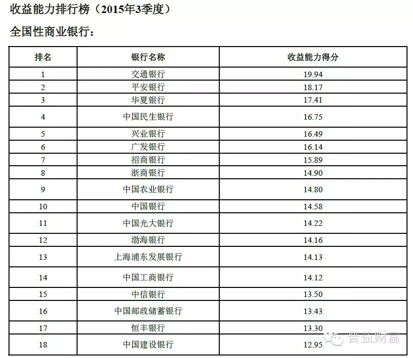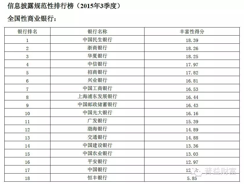 综合理财能力:兴业、民生、招商居全国性银行前三,南京、江苏、北京居区域性银行前三 全国性银行综合排名前十强依然是股份制商业银行占据绝大多数席位,其中有8家为股份制商业银行,2家为国有银行。国有银行得益于网点数量庞大,所以在理财产品的发行规模有相对的优势,但是其在产品收益定价水平、产品的风险控制以及信息披露规范性等方面的表现较大多数股份制银行及少部分大型城商行偏弱。因此综合理财能力排名中,国有银行名次略为靠后。不过,国有银行中,交通排名全国性银行第四,其发行能力与收益能力均极为突出。 分类指标测度 发行能力:交行、招行、农行居全国性银行前三,北京、南京、江苏银行居区域性银行前三 从投资类型来看,全国性商业银行理财产品主要为组合投资类理财产品和债券与货币市场类理财产品,发行数量分别为6624款与6236款,两者共占71.87%。在各银行中,华夏银行的债券与货币市场类产品发行数量最多,为1412款,紧随其后的是兴业银行、中国银行和平安银行;招商银行的组合投资类产品发行数量最多,为1000款,发行该类产品超过500款的还有广发银行、民生银行;结构性产品的发行数量为3891款,占比为21.75%,发行该类产品最多的农业银行和民生银行分别发行了752款和535款。 全国性商业银行发行规模估测约为26.87万亿。其中,国有银行发行规模估测约为13.62万亿;股份制商业银行发行规模估测约为13.25万亿。 区域性商业银行发行规模估测约为1.98万亿。其中,城市商业银行的估测发行规模在区域性商业银行中占比约为73.17%,较上期下降1.42个百分点。 收益能力:交通银行、平安银行、华夏银行居全国性银行前三,东莞银行、南京银行位居区域性银行前二名 本季度大部分银行理财产品的EI值环比上升,但是上升原因并非是由于其绝对收益率上升,而是因为EI值的计算以同期存款利率作为参照物,二季度存款基准利率大幅降低,致使银行理财产品的平均EI值上升较大。 全国性商业银行发行的理财产品中,共有10930款公布了预期收益率,平均EI值为2.8075。在纳入排名的银行中,浙商银行产品平均EI值为3.2103,在全国性商业银行中最高,但其发行数量仅为371款,在发行产品数量上不占优势,因此该行在全国性商业银行的收益能力排名中位居第八。交通银行收益能力排名第一,其平均EI为2.9443,高于平均EI值,但其发行量为2804款,两方面综合原因促使其在收益能力上位居第一。 区域性商业银行发行的理财产品产品中,共有14372款公布了预期收益率, 平均EI值为2.9455。在纳入排名的银行中,东莞银行收益能力位居首位,其平均EI值为3.7870,在区域性商业银行中排名第三,由于其发行数量超过250款,因此收益能力排名第一。南京银行发行产品超过800款,在区域性商业银行中发行数量最多,且其平均EI为3.0836,高于平均水平,因此收益能力排名第二。 风险控制能力:民生银行、招商银行、中信银行居全国性银行前三,江苏银行、青岛银行、南京银行居区域性银行前三 全国性商业银行中,民生银行、交通银行、华夏银行、中国银行和兴业银行在实现预期收益率的产品数量方面表现优秀,这些银行公布的实现了预期收益率的固定收益类产品数量均超过800款,显著超过其他银行。民生银行2015年3季度公布的实现了预期收益率的固定收益类产品数量达到874款,实现了预期最高收益率的结构性产品数量达到872款,远超多数全国性商业银行,再加上该行在收益实现能力方面表现突出,因而在全国性商业银行中位列风控能力第一位。 理财产品丰富性:中信银行、光大银行、兴业银行居全国性银行前三,杭州银行、江苏银行、南京银行居区域性银行前三 排名靠前的全国性商业银行在收益类型、投资币种、投资对象、投资期限、投资起点共五个子项目中的至少三个上都有较为突出的表现。中信银行在2015年3季度位列理财产品丰富性第一位,该行在收益类型、投资币种、投资对象和投资起点类型上所得分数均较高。光大银行紧随其后排名第2位,该行在收益类型、投资对象、投资币种、投资期限4个子项目上取得了与中信银行同样的得分,仅在投资起点得分上落后于中信银行。 信息披露规范性:民生银行、浙商银行、华夏银行居全国性银行前三,苏州银行、锦州银行、南京银行居区域性银行前三 整体来看,全国性商业银行在信息披露方面的表现仍然不及部分优秀的区域性商业银行,从排名前18位的区域性商业银行与全国性商业银行的比较可以看出,全国性商业银行在发行、到期和运行信息三个子项上的平均得分均低于排名前18位的区域性商业银行,尤其是运行信息平均得分的差距达1.5分(此子项满分为5分),相比于第2季度的1.47分,此项差距继续扩大。 评估问卷测度 2015年第3季度银行理财能力排名的评估问卷测度包括动态调查问卷和静态调查问卷,卷面总分100分,其中动态调查问卷30分,静态调查问卷70分。对本季度未返回问卷的银行给予50.50基础分。
