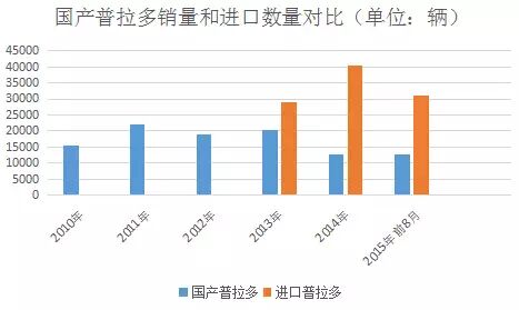 与此同时,普拉多的进口数量却在强势拉升。据国机汽车股份有限公司数据,2013年,普拉多进口量为28730辆,2014年提升至40126辆;而如今,2015年尚未收官,普拉多1-8月累计进口数量已经达到30896辆。