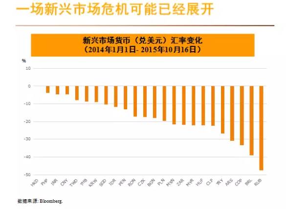 我非常同意杨总的观点,做一些海外的资产配置是非常非常重要的。同时我也想提醒大家,这里会有一些风险。你看我们这个主持人说,我这个题目是叫《新兴市场的危机共生》。实际上我对2016年新兴市场是有很大的担忧的。我想在海外市场的人都很清楚,因为新兴市场出现问题也不是第一天了。