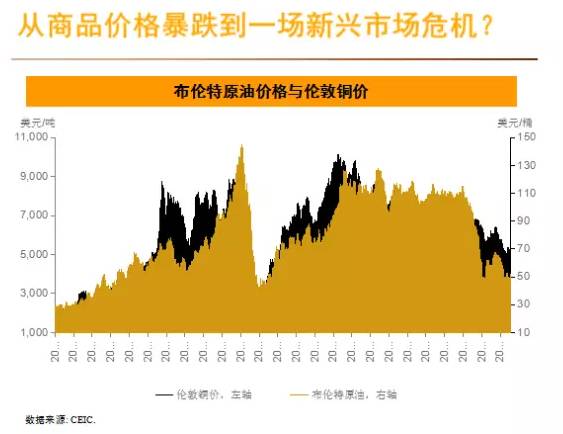 就是汇率,看这张表的话,你可以看到,实际上从2014年的1月1号开始,过去的这快2年,我们看到新兴市场的很多货币都出现了20%的跌落,很多实际上是发生在今年的,我之所以往前放一点,是想跟商品价格联系在一起。